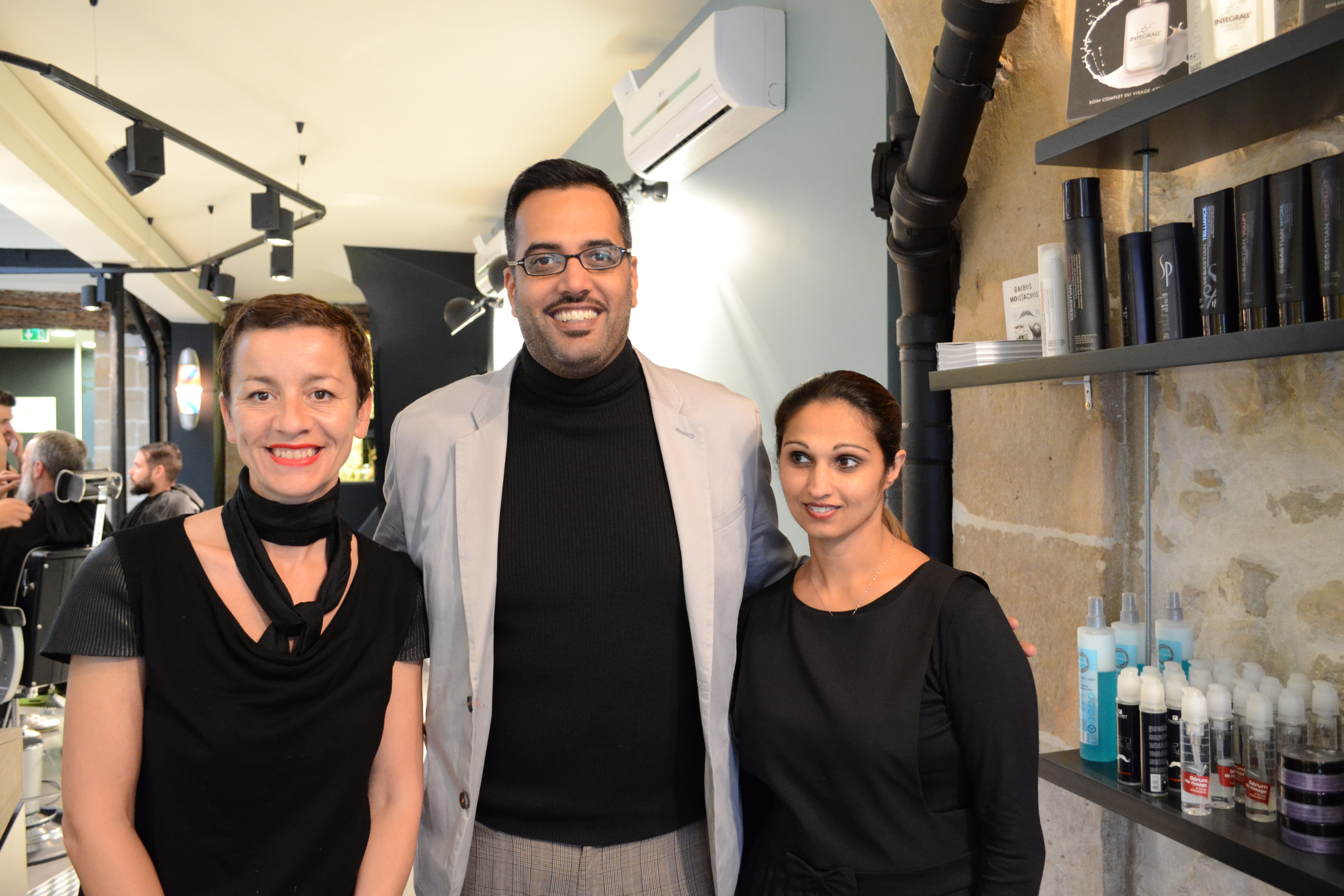 Rahim with Ines and Sarah, the salon owner and head stylist.